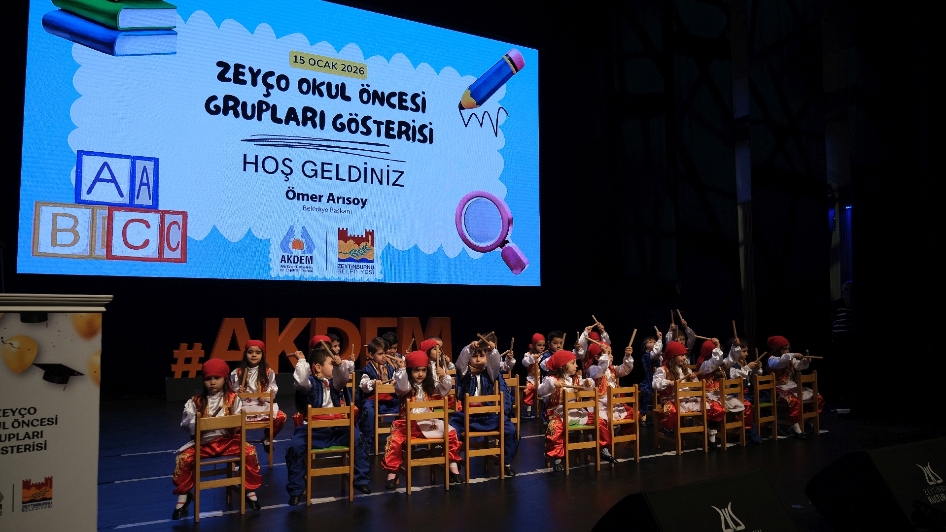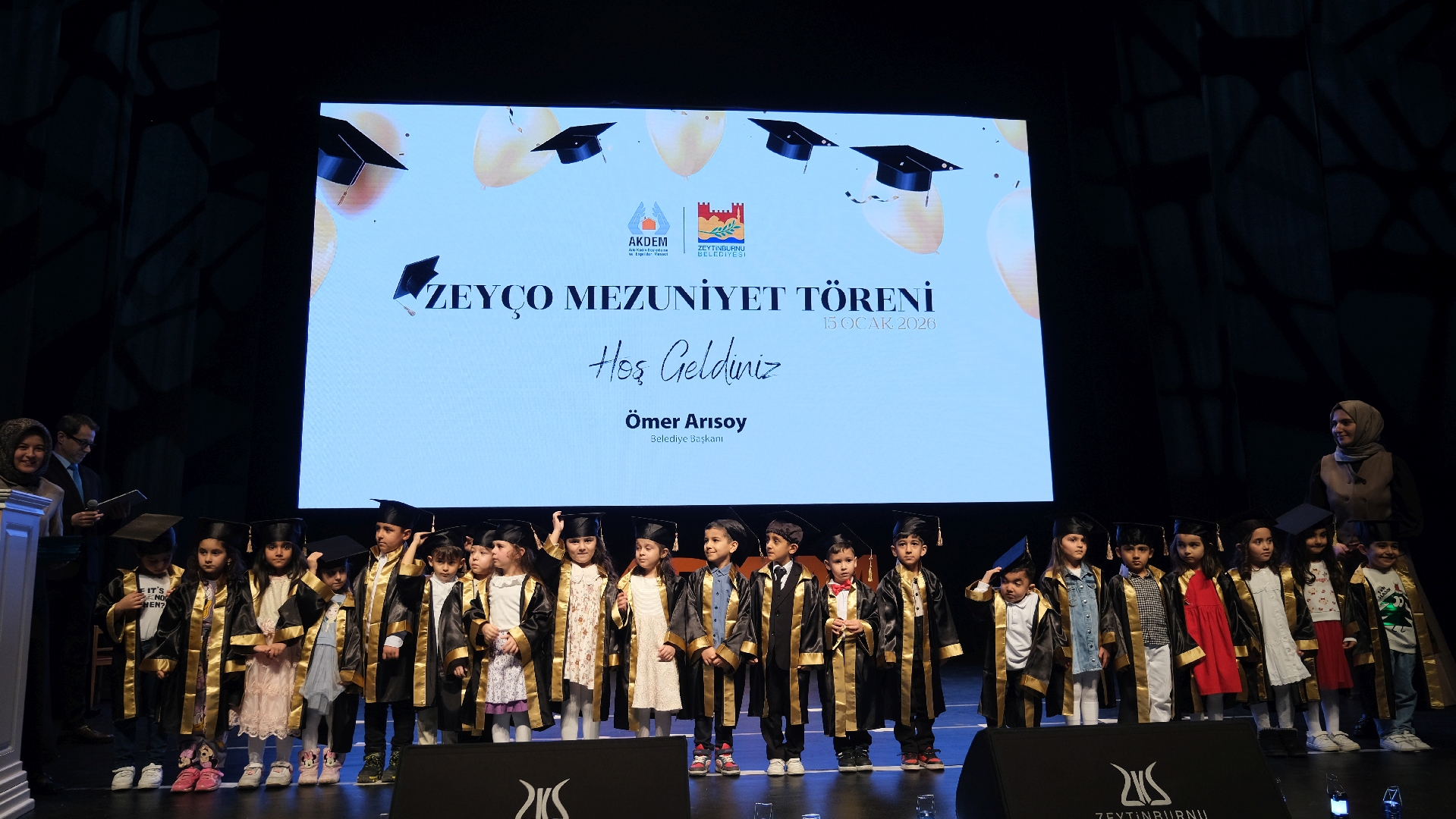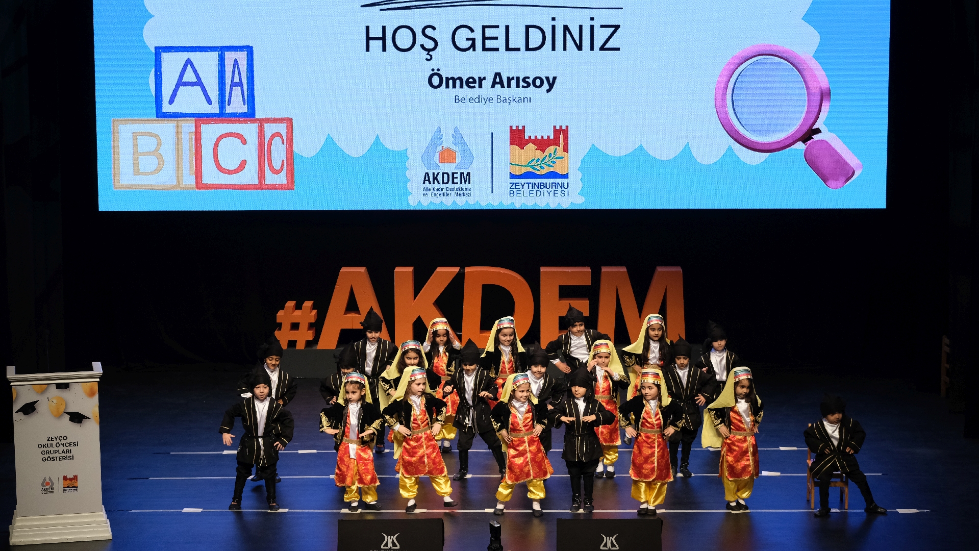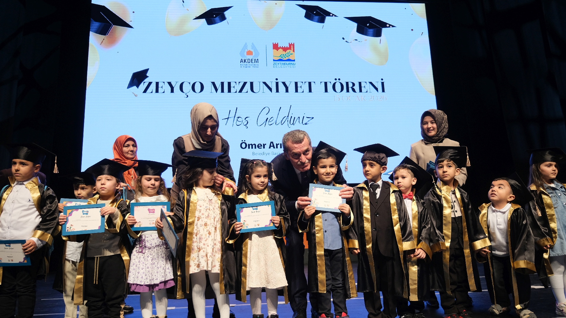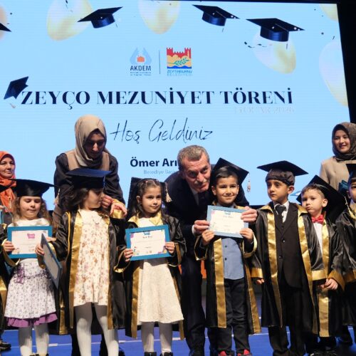 Zeytinburnu Aile Kadın Destekleme ve Engelliler Merkezi (AKDEM) bünyesinde yürütülen okul öncesi eğitim programı “ZeyÇo Çocuk Eğitimleri”ni başarıyla tamamlayan çocuklar, mezuniyet sevincini aileleriyle birlikte yaşadı.
