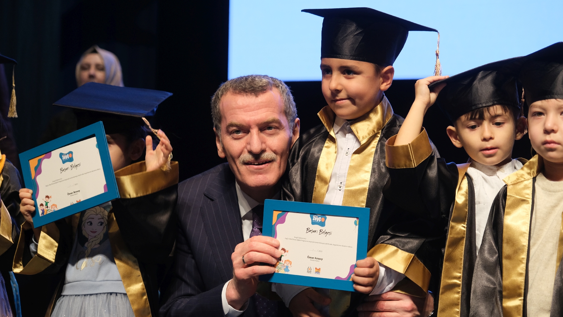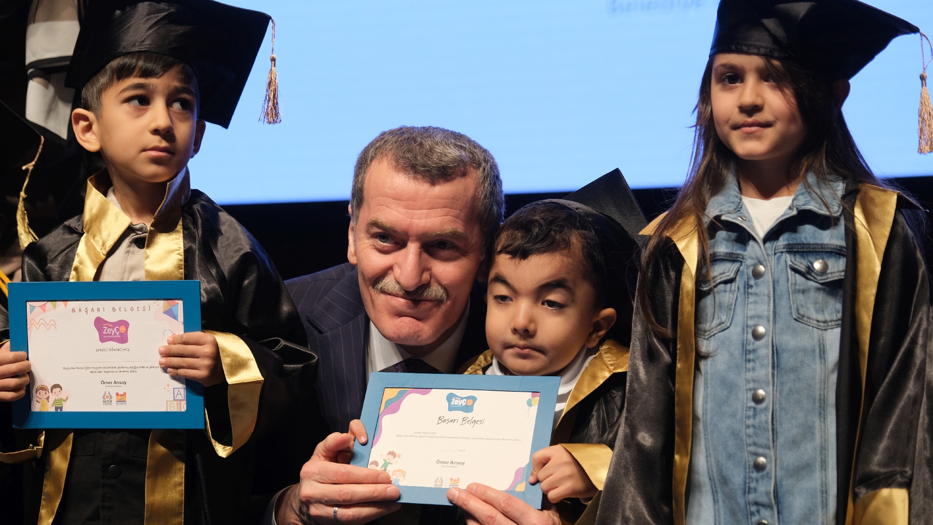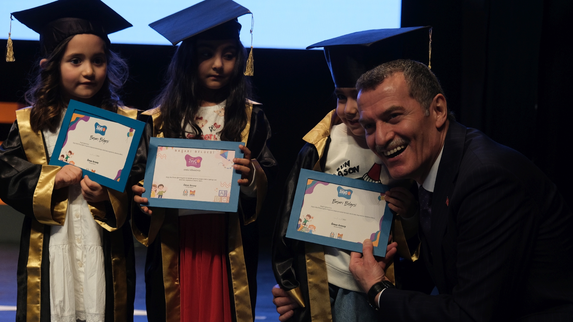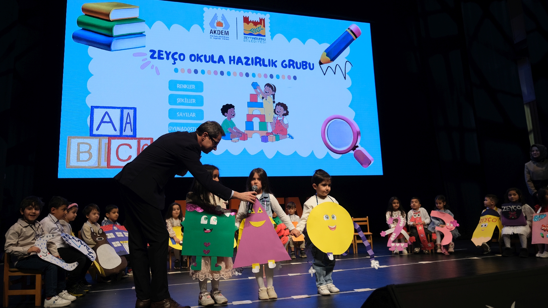 Zeytinburnu Aile Kadın Destekleme ve Engelliler Merkezi (AKDEM) bünyesinde yürütülen okul öncesi eğitim programı “ZeyÇo Çocuk Eğitimleri”ni başarıyla tamamlayan çocuklar, mezuniyet sevincini aileleriyle birlikte yaşadı.