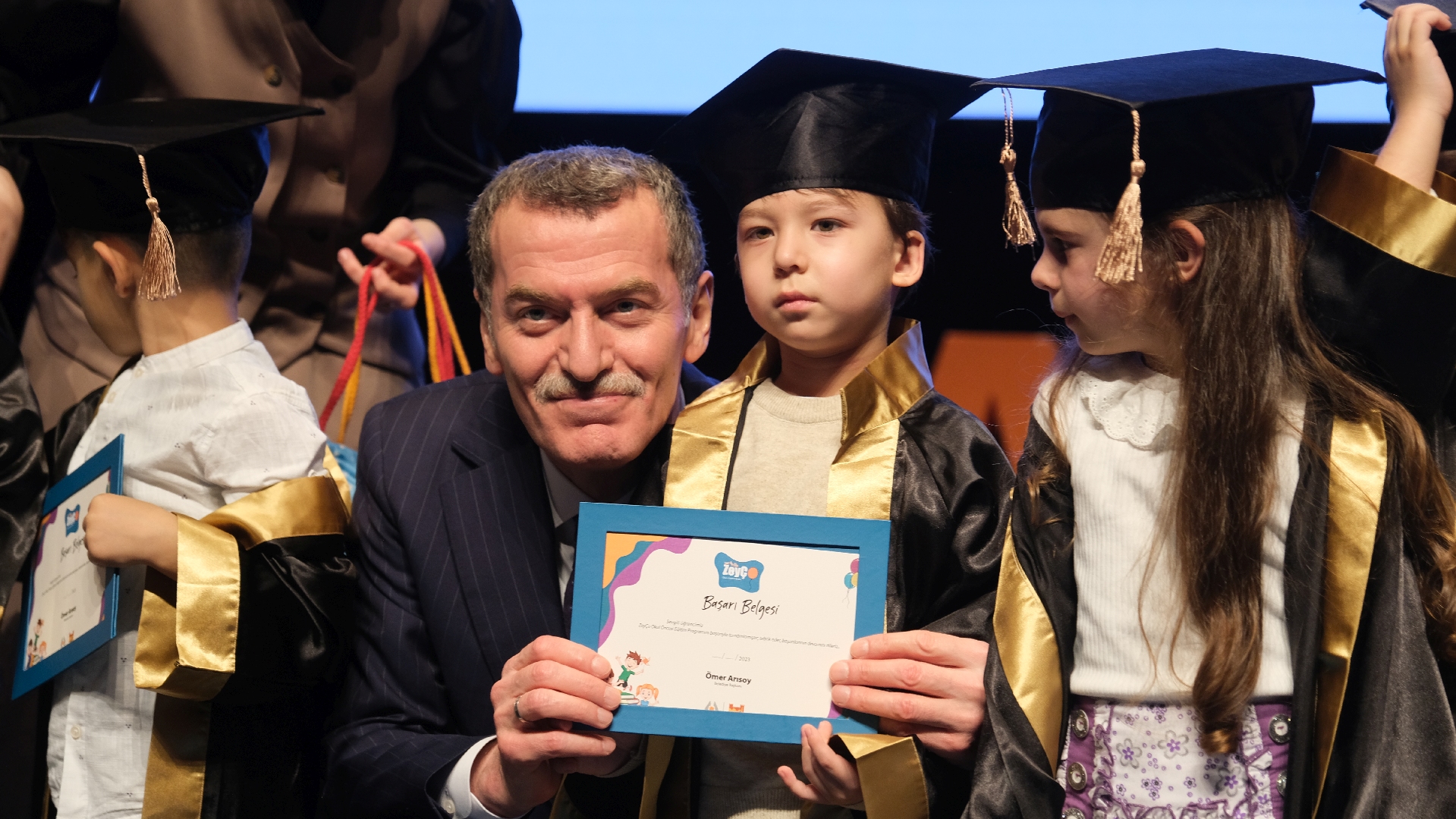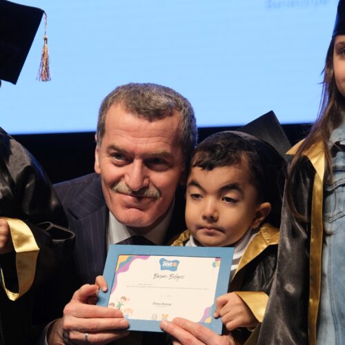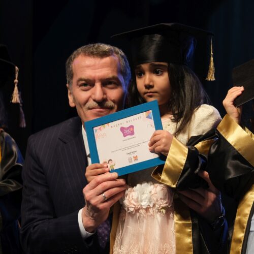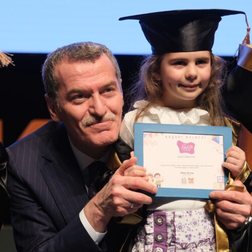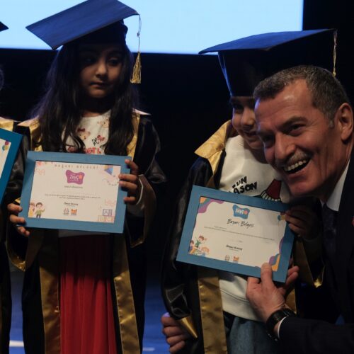 Ekim ayında başlayan ve toplam 32 oturumdan oluşan programı bu yıl 107 çocuk başarıyla tamamladı. Eğitimlerini tamamlayan minikler, mezuniyet töreninde hazırladıkları sahne gösterileriyle ailelerine duygu dolu anlar yaşattı. Programın sonunda çocuklara okul öncesi eğitim aldıklarına dair belgeleri takdim edilirken, minikler kep atarak mezuniyetlerini coşkuyla kutladı.