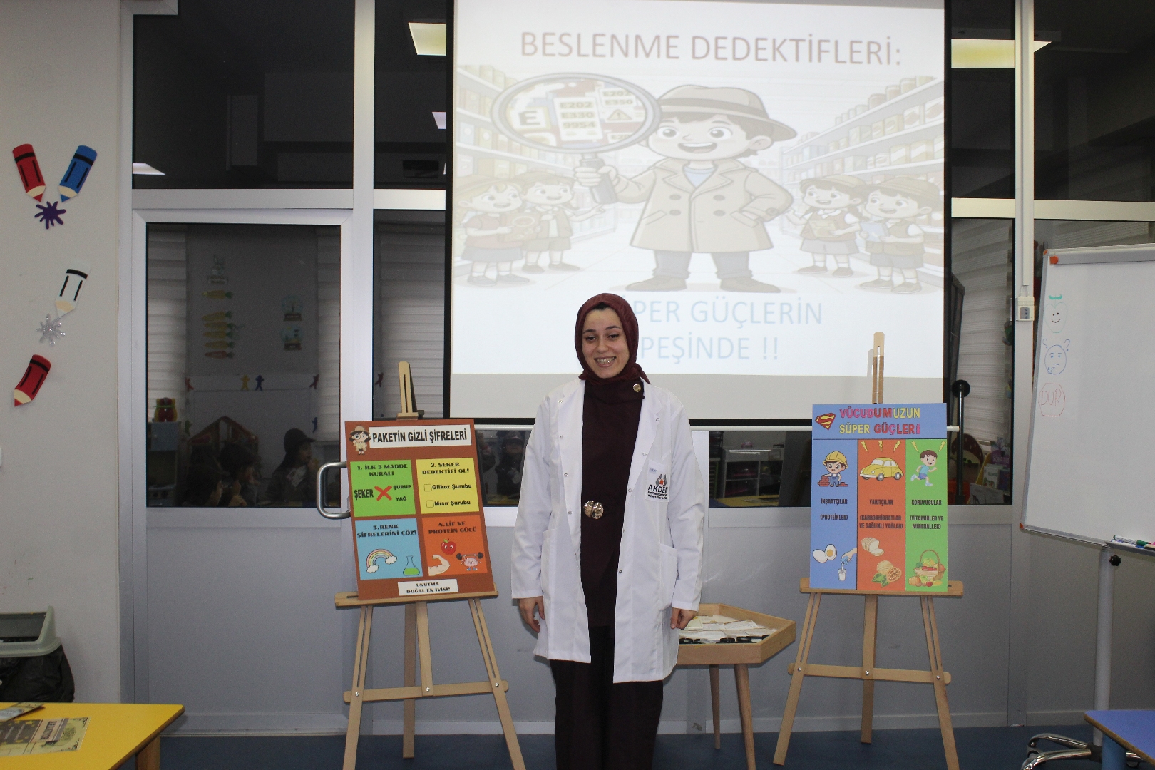 Etkinlik boyunca ellerindeki büyüteçlerle gerçek birer dedektif gibi hareket eden çocuklar; sebze, meyve ve paketli gıdaları mercek altına aldı. Oyunlaştırma yöntemiyle kurgulanan eğitimde, hangi besinin vücutta nasıl bir “süper güç” yarattığı interaktif oyunlarla anlatıldı. Çocuklar, paketli gıdaların içindeki gizli tehlikeleri keşfederken, doğal gıdaların şifrelerini çözmek için birbirleriyle yarıştılar.