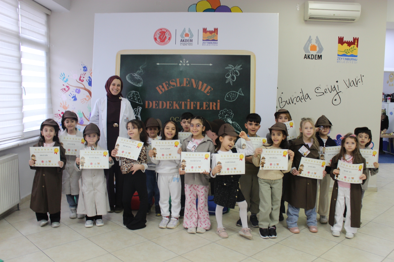 Zeytinburnu Belediyesi Aile Kadın Destekleme ve Engelliler Merkezi (AKDEM), tarafından düzenlenen “Beslenme Dedektifleri” projesi, çocukların yoğun katılımı ve büyük heyecanıyla gerçekleştirildi. Sağlıklı beslenmenin şifrelerini çözen küçük dedektifler, eğitim sonunda sertifikalarına kavuştu.